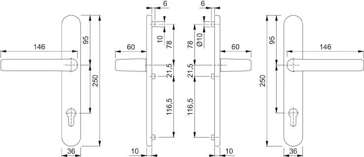 • HOPPE-Aluminium-Profiltür-Langschild-Garnitur (Türgriff-Garnitur)