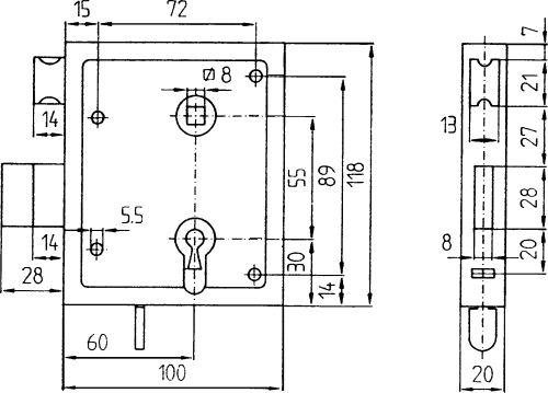Produktinformationen "Rhein. Kastenschl. m. Kst.Dr. 79 PZ/W 60mm Dorn"