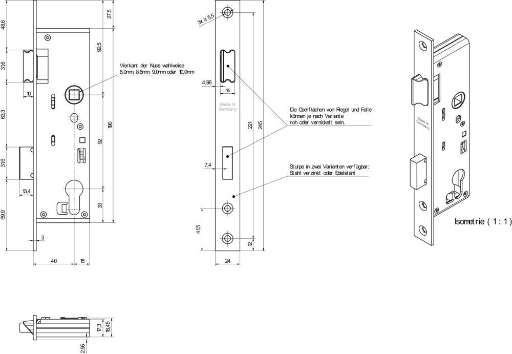 • Einbautiefe Schlosskasten 30,5 mm, geschlossen