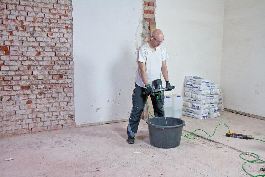 Kraftvolles Mischen von bis zu 80 kg Material ermöglicht dieses Rührgerät-Set. Verwenden lässt es sich zum Mischen von Baustoffen mit hoher Viskosität. Dazu gehören Spachtel- und Ausgleichsmassen, Fliesenkleber, Fertigmörtel, Fertigputze, Estrich, Epoxydharze, Dichtungsmassen und Granulate.