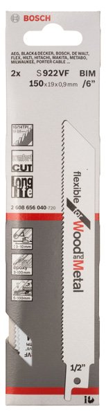 Säbelsägeblatt S 922 VF, Flexible for Wood and Metal, 2er-Pack