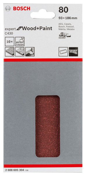 Schleifblatt C430, 93 x 186 mm, 80, 8 Löcher, 10er-Pack