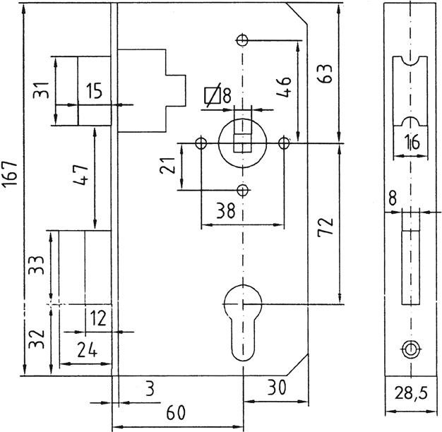 • Mit verzinktem Schloss, Falle, Riegel und Gehäuse