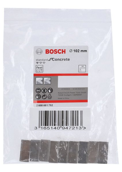 Produktinformationen "Segmente für PRO Diamantnassbohrkrone, 102 x 10 mm, 1 1/4-Zoll UNC, 9-tlg."
