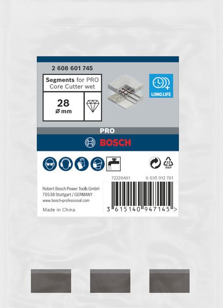 Segmente für PRO Diamantnassbohrkrone, 28 x 10 mm, 1 1/4-Zoll UNC, 3-tlg.