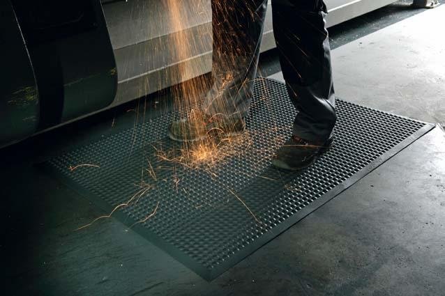 Mit dieser Parkplatzabgrenzung lassen sich schnell und unkompliziert Parkflächen organisieren. • Sanftes Stoppen von Fahrzeugen, auch als Prallschutz nutzbar • Einsatz: auf Parkplätzen, in Tiefgaragen oder Parkhäusern • Geeignet für den Außen- und Inneneinsatz • UV-stabil zum Ganzjahreseinsatz • Farbe: schwarz mit gelb reflektierender Folie • Montage: zum Aufdübeln mit verstärkten Aussparungen im Produkt Diese Anti-Ermüdungsmatte steigert den Komfort für die Mitarbeiter, die im Stehen arbeiten müssen. • Mit Rautenprofil • Sehr langlebig • Abgeschrägte Kanten: Stolperrisiko wird reduziert • Mit gelben Kanten: für bessere Sichtbarkeit • Lose verlegbar: flexible Einsatzmöglichkeiten Technische Daten • Brandschutzklasse: BS-EN 13501-1 • Material: PU