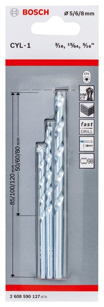 3-tlg. CYL-3 Betonbohrer-Set, 5/6/8 mm