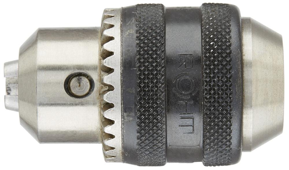 • Für Netzbohrmaschinen und Akkumaschinen mit/ohne Spindelstop bis zu einem maximalen Drehmoment von 100 Nm und bis 1500 Watt Leistung • Schlagbohrfestes Schnellspann-Bohrfutter mit Radialverriegelung und Kunststoffhülse • Mit Haltering für Maschinen mit und ohne Spindelstop • Durchbohrte Ausführung für Rechts- und Linkslauf • Leichtes Spannen und Verriegeln mit einer Handbewegung für höchste Bedienerfreundlichkeit • Radialverriegelung, um das ungewollte Lösen des Werkzeuges im Rechts- und Linkslauf zu verhindern • Schlagbohrfest für universellen Einsatz • Mit Anfahrschutz durch freidrehende Schutzscheibe