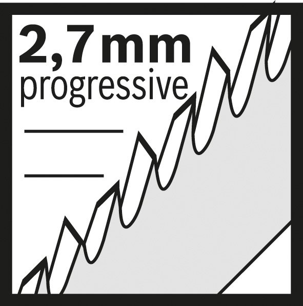 Das T 101 B Clean for Wood Stichsägeblatt macht saubere gerade Schnitte in Holz. Die präzisionsgeschliffenen Zähne mit Kegelschliffkörper ermöglichen makellose Ergebnisse. Das Blatt aus Kohlenstoffstahl ist zum Schneiden von Weichholz und nicht-abrasiven Holzwerkstoffen geeignet. Es ist mit einer fein progressiven Zahnteilung (2,7 mm) ausgestattet, um Holzwerkstoffe mit einer Dicke von 3-30 mm zu schneiden.