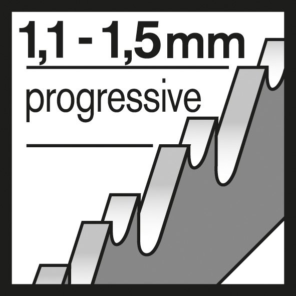 Das T 118 A Basic for Metal Stichsägeblatt macht gerade Schnitte in Metall. Die gefrästen, gewellten Zähne sind ideal für Schnitte ohne besondere Anforderungen. Das Blatt aus hochwertigem gehärtetem HSS (Hochgeschwindigkeitsstahl) ist zum Schneiden von nicht perforierten Metallblechen mit Standard-Stärke geeignet. Die sehr fein progressive Zahnteilung des Blatts (1,1-1,5 mm) ermöglicht es, eine Vielzahl an sehr dünnen massiven Metallblechen mit einer Dicke von 1-3 mm zu schneiden.