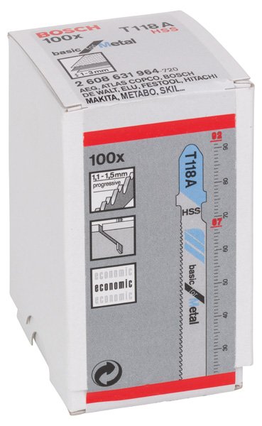 Stichsägeblatt T 118 A Basic for Metal, 100er-Pack