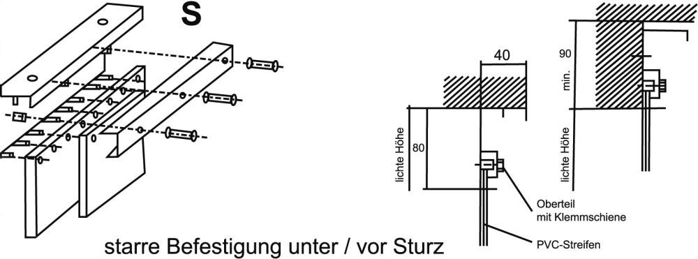 • Befestigungsart V, beweglich, seitenverschiebbar: Befestigung unter oder vor dem Sturz