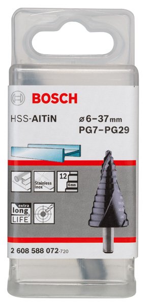 Produktinformationen "Stufenbohrer HSS-AlTiN, 6 - 37 mm, 10 mm, 93 mm, 12 Stufen"