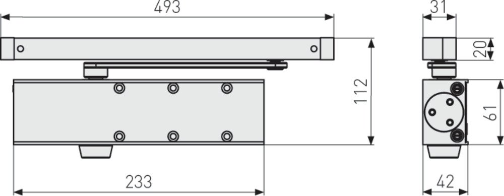EINER FÜR DAS BÜRO Dieser Türschließer ermöglicht das selbstständige Schließen von Türen in Büros und öffentlichen Gebäuden. Knallende Türen stören Sie und Ihre Kollegen bei der Arbeit? Sorgen Sie mit diesem selbstständigen Türschließer dafür, dass Türen in Büros und öffentlichen Gebäuden sicher und leise schließen. Von ganz allein. Dieser Schließer eignet sich für Türen mit einer Breite von bis zu 96 Zentimetern und einem Gewicht von maximal 60 Kilogramm. Gleitschiene und Öffnungsdämpfung sorgen für ein leises Schließen