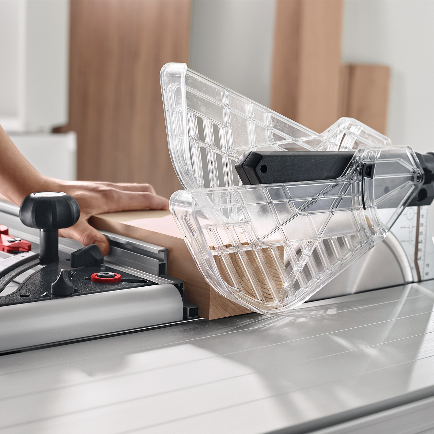 Als weltweit erste Unterflur-Zugsäge ist die ERIKA seit ihrer Einführung zum Inbegriff des mobilen Sägens geworden. Nach fast 40 Jahren Erfahrung hat die aktuelle Generation heute alles an Bord, was die Anwender von einer modernen Unterflur-Zugsäge erwarten. Der integrierte Quickstand stellt die ERIKA innerhalb von Sekunden auf 4 stabile Aluminiumbeine. Schützende Gummistopper an den Füßen vermeiden zudem ein Verrutschen oder Anecken. Der einzigartige Staubkanal bündelt den Sägestaub und führt ihn sicher nach hinten ab. Dank dieser Neuentwicklung wird Ihr Absauggerät noch effektiver genutzt. Ergebnis: Sauberes Arbeiten auf einer sauberen Baustelle! Die Bedienung der ERIKA lässt keine Fragen offen. Klar konzipierte Bedienelemente sind alle logisch an der Vorderseite der Maschine angebracht! Dank der Regelelektronik E-control und dem entsprechenden Original-MAFELL-Sägeblatt ist es möglich, neben Holz auch andere Werkstoffe wie Kunststoffe oder Alu-Profilen zu verarbeiten. Weitere Pluspunkte für die ERIKA 85: Extrem stabiles Tischprofil, Schwenkbereich von -3° bis 48°, ein absenkbarer Spaltkeil und die max. Schnittlänge von 430 mm.
