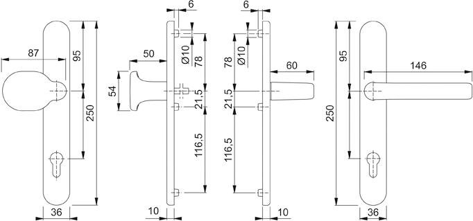 • HOPPE-Aluminium-Profiltür-Langschild-Garnitur