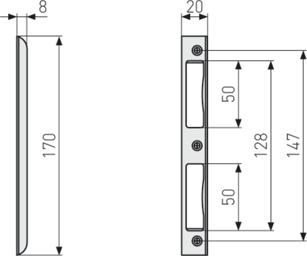 WINKELSCHLIESSBLECH Unser Winkelschließblech WSB170 eignet sich für Wohnungstüren und Zimmertüren. Ein Schließblech gehört zur Grundausstattung einer möglichst einbruchssicheren Tür und sorgt zum einen dafür, dass eine Tür geschlossen gehalten werden kann. Zum anderen schützt es Türrahmen aus Kunststoff oder Holz davor, beschädigt zu werden, wenn eine Tür ins Schloss fällt. Winkelschließbleche eignen sich bei Falztüren, denn bei diesen Türen ist das Türblatt stufenförmig (= gefälzt) gebaut. Das Schließblech WSB170 KU aus Stahl ist universell für DIN-linke und DIN-rechte Innentüren und Wohnungsabschlusstüren einsetzbar.