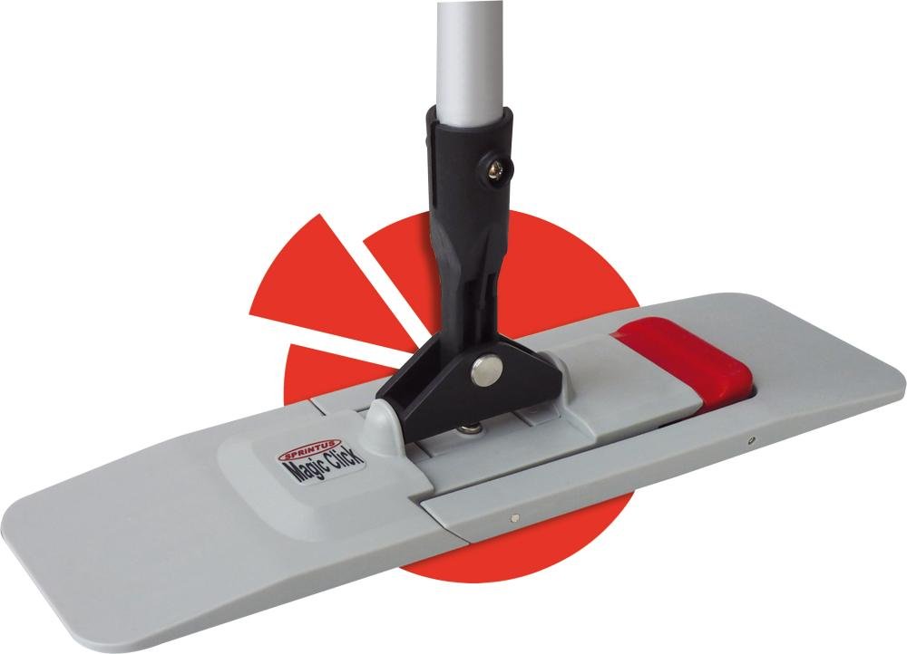 Dieses Wischset hat einen Magnetklapphalter (Magic Click) mit pantentierter Aufrechtfunktion, die auf 10000 Rasterungen getestet ist. Zur einfachen Höhenverstellung dient ein Schnellverschluss. Das leichtgängige Drehgelenk ermöglicht einfaches Schwenken in jede Richtung und jede Neigung.