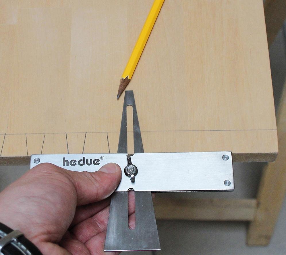 • Zum exakten Anreißen von Zinken- und Schwalbenschwanzverbindungen, eignet sich besonders zum Anreißen an Schrägen bzw. für Trichter und Zierzinkungen